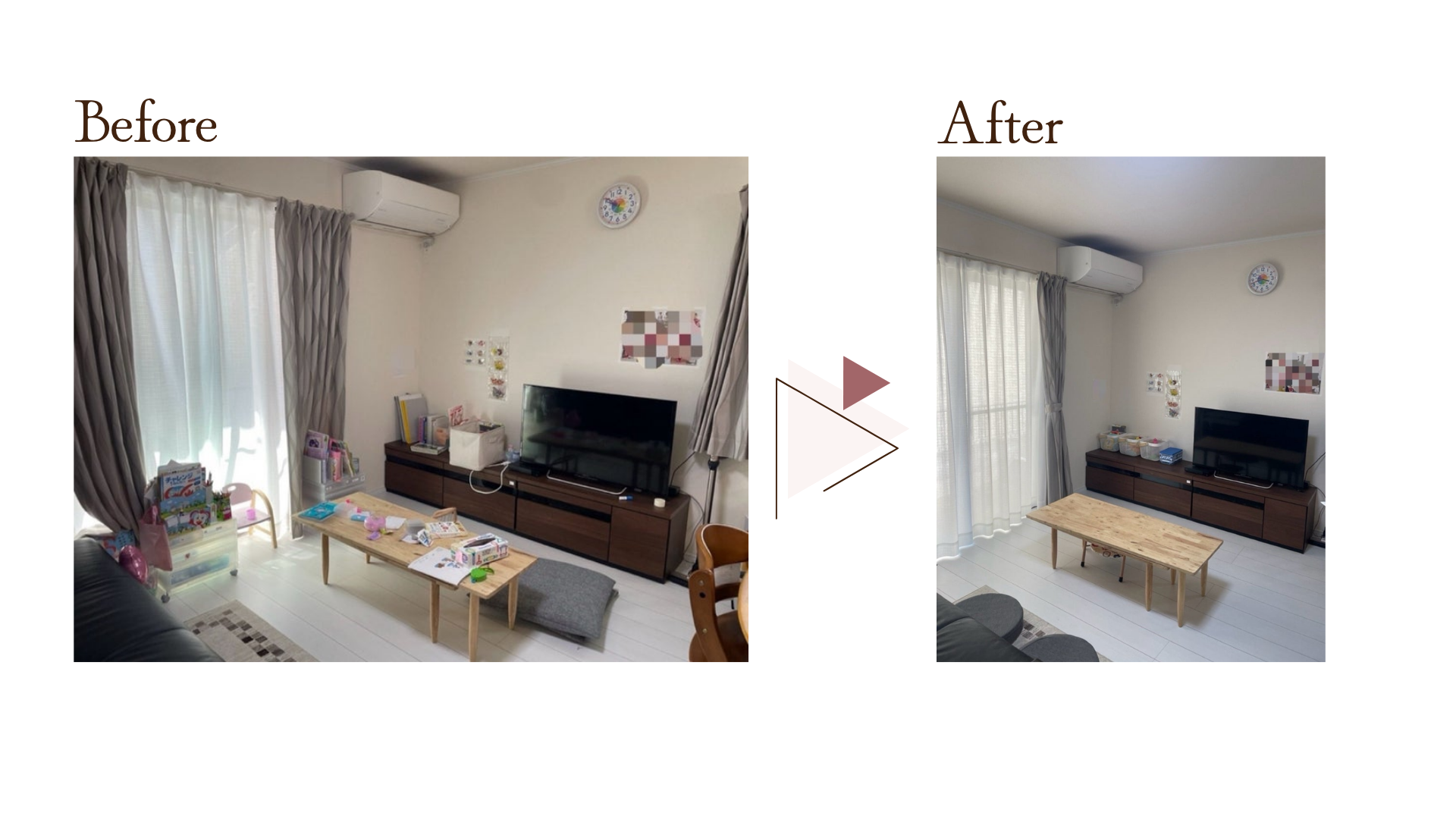 「どこから手をつければいいかわからずずっと悩んでいましたが、やさしい声かけで一緒に整理してもらうことで家が見違えるほど整いました。」